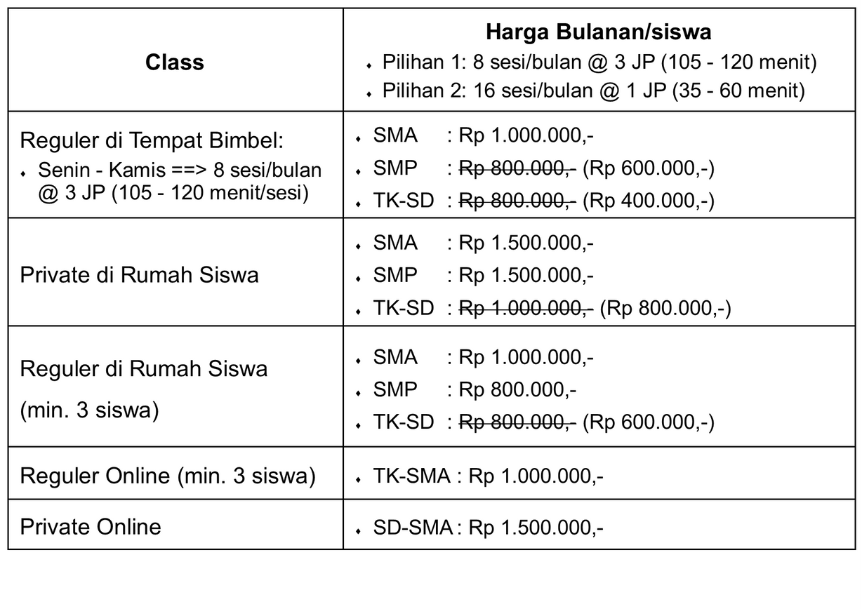 Silahkan bandingkan dengan bimbingan belajar lain!